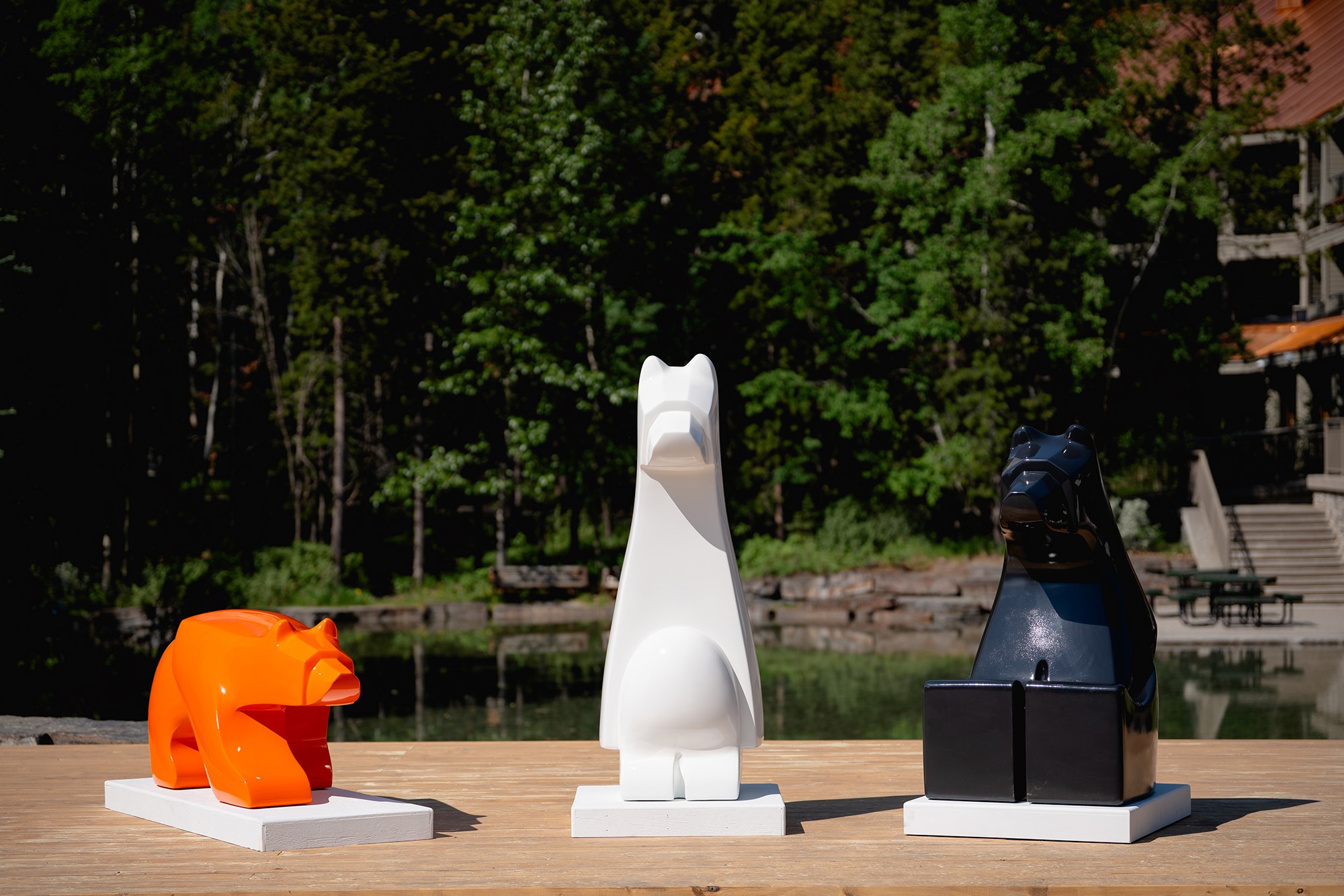 Jason Carter est un sculpteur, peintre et artiste public de la nation Cree de Little Red River. Connu pour son approche ludique célébrant la région où il vit et ceux qui habitent le territoire, Carter a réalisé cette sculpture dans le cadre d'une série inspirée par l’ours, en utilisant des lignes épurées et des couleurs brillantes emblématiques de son travail.