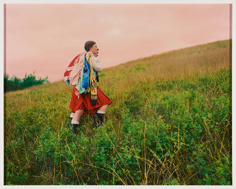 Amalie Atkins est une artiste multidisciplinaire canadienne d’origine ukrainienne dont la pratique est enracinée dans la mise en récit. Elle explore souvent les liens ancestraux, les raisons pour lesquelles des communautés quittent leur pays natal et la manière dont elles persévèrent. Le film The Diamond Eye Assembly duquel est tirée cette image est basé sur la culture, les lieux et les mythologies des doukhobors et des mennonites ukrainiens qui se sont installés dans la région des Prairies. Grâce à une esthétique similaire à celle des contes populaires, Atkins représente des femmes qui effectuent des tâches quotidiennes – célébrant ainsi la résilience de ses ancêtres et de sa culture.
